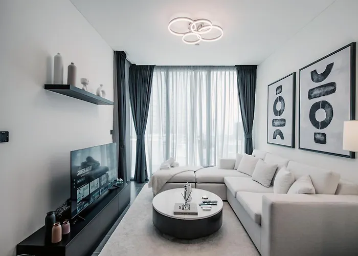 Ideal platziert, ist das Lux Sobha Hartland 1 Bedroom With 5 Star Resort Amenities nur 4.5 km von Business Bay entfernt und erreicht die lebendigen Herzen Dubais in nur 20 km. Diese verdiente Lage ermöglicht unkomplizierten Zugang zu den bedeutendsten Attraktionen sowie kulturellen Highlights der Stadt, was einen perfekten Mix aus Entspannung und Erkundung bietet.